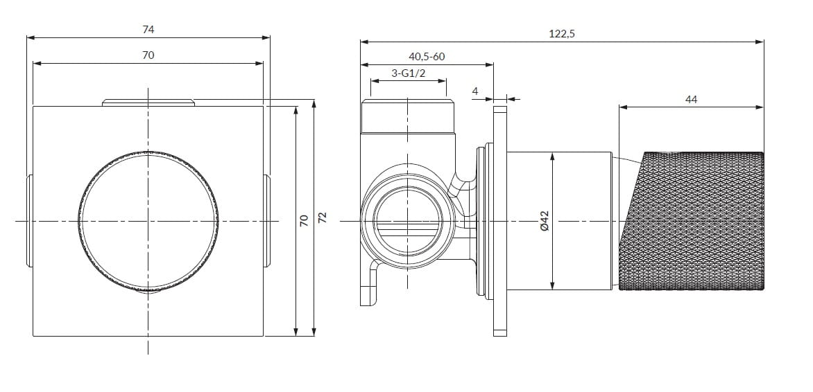 - dwa wejścia (na wodę ciepłą i zimną): 1/2”, jedno wyjście wody zmieszanej: 1/2”