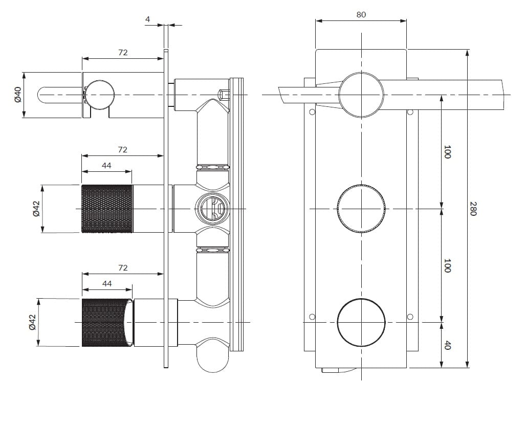 CONTOUR | bateria prysznicowo-wannowa podtynkowa z rączką prysznicową