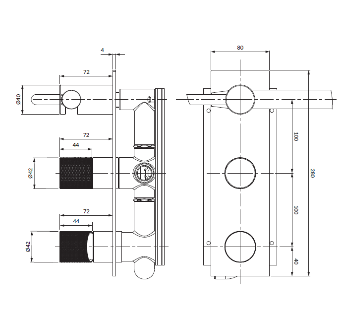 CONTOUR | bateria prysznicowo-wannowa podtynkowa z rączką prysznicową