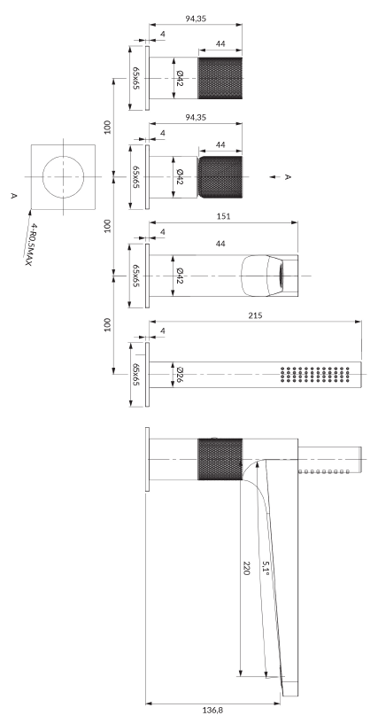 CONTOUR | bateria wannowa 4-otworowa