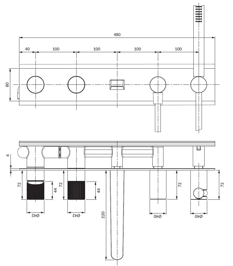 CONTOUR | bateria wannowa 5-otworowa podtynkowa