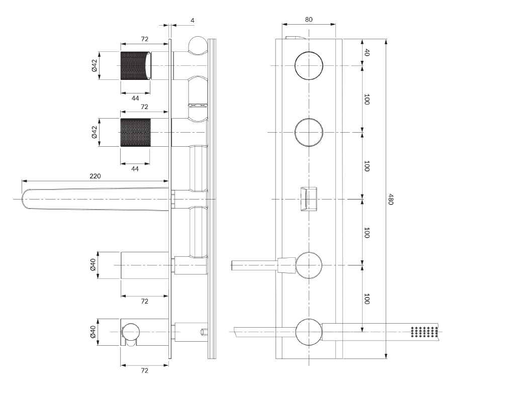 CONTOUR | bateria wannowa 5-otworowa podtynkowa