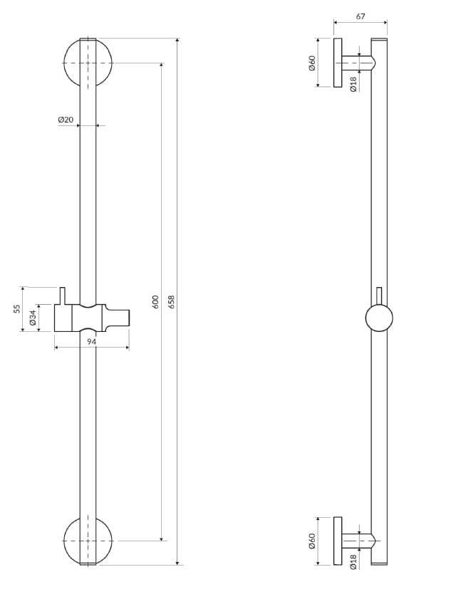 - drążek prysznicowy mosiężny, długość: 66 cm, rozstaw mocowań: 60 cm