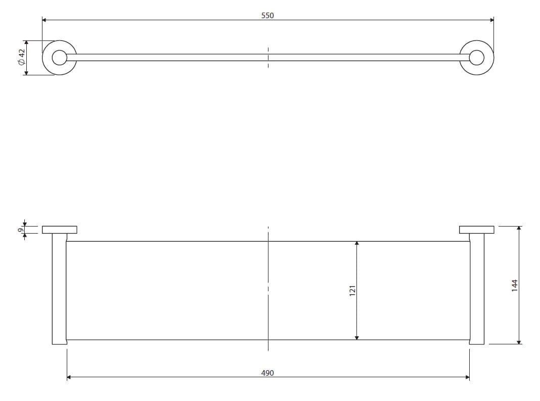 - szerokość: 55 cm, wysokość: 4,2 cm, odległość od ściany: 14,4 cm