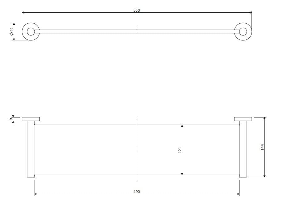 - szerokość: 55 cm, wysokość: 4,2 cm, odległość od ściany: 14,4 cm