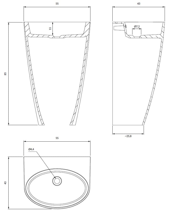 SIENA M+ | umywalka wolnostojąca, 55 x 43 cm
