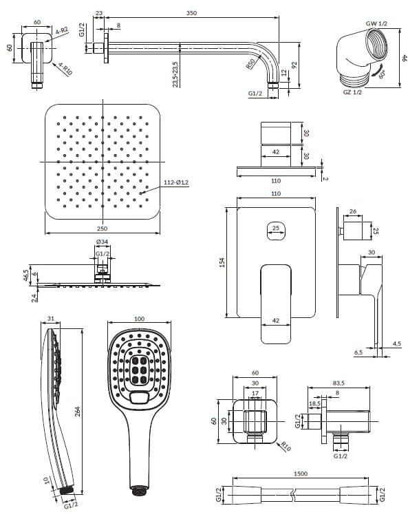 SLIDE | system prysznicowy podtynkowy