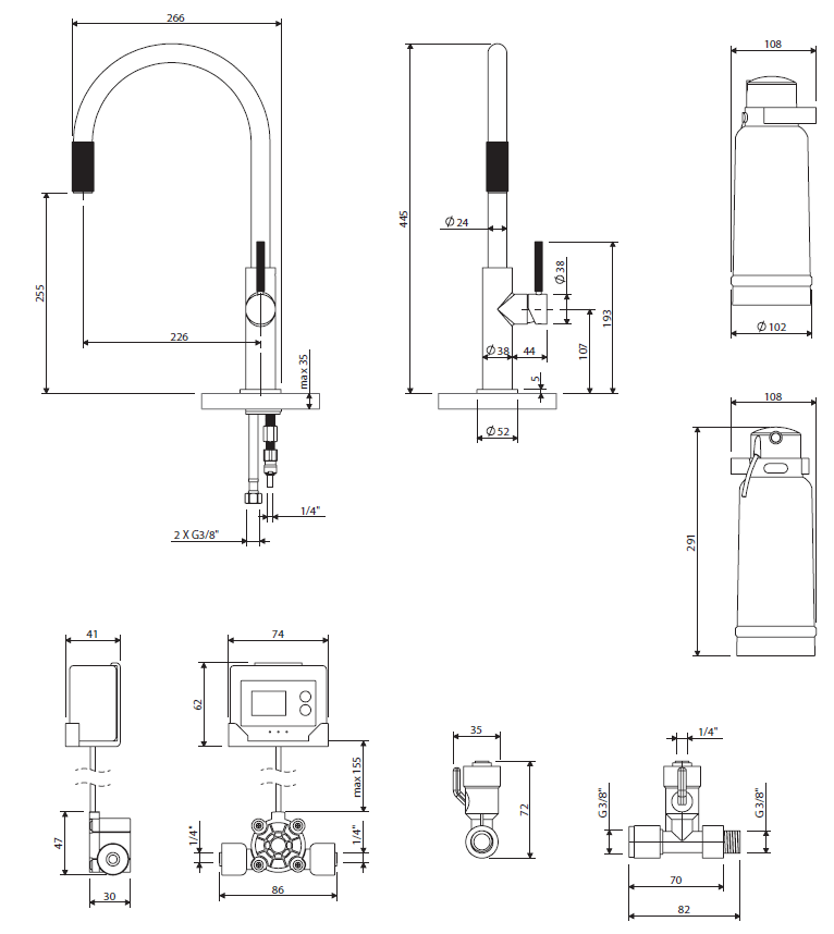 - obrotowa dwudrożna wylewka z funkcją wody filtrowanej