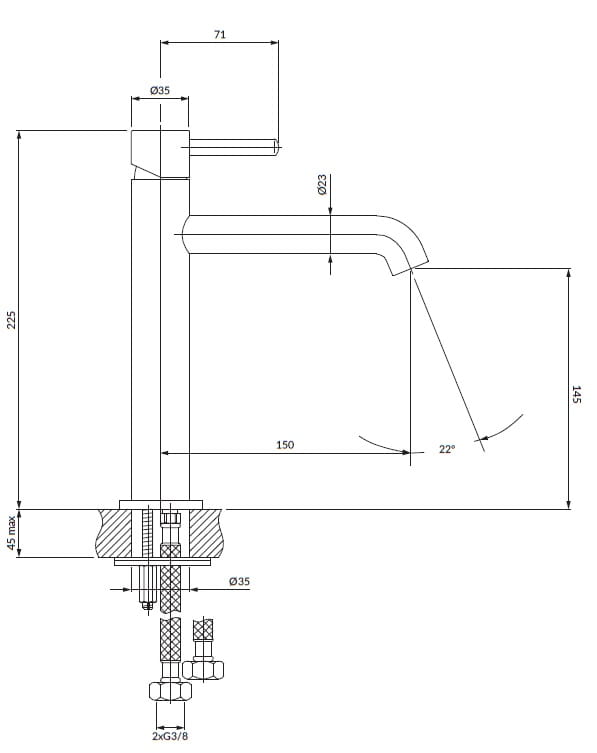 Y | bateria umywalkowa, 23 cm (głowica 25 mm)