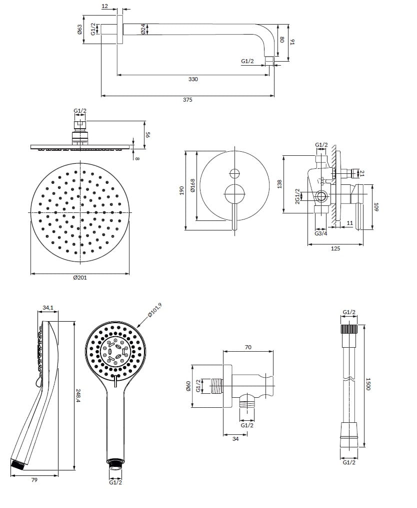 - rączka prysznicowa (YOSEMITE-RCR), 5-funkcyjna, rodzaj strumienia: masaż, mgła, napowietrzony deszcz, napowietrzony masaż, napowietrzona mgła