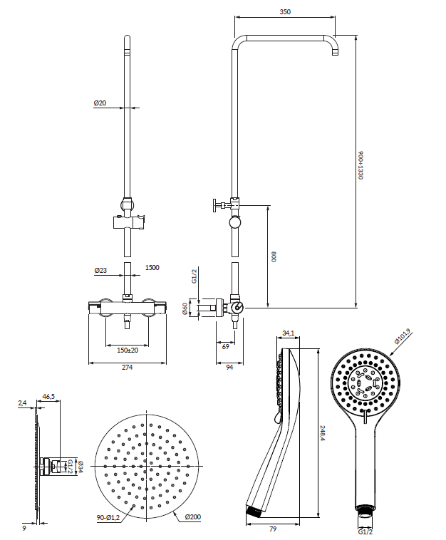 - regulowana wysokość, minimalna/maksymalna wysokość systemu: ~90 cm/~130 cm