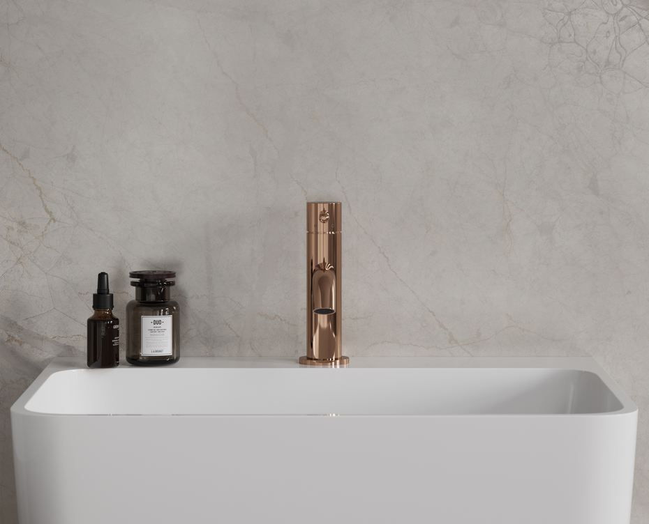 Miedź jest szlachetnym wykończeniem o ciepłej czerwonobrązowej barwie i idealnie gładkiej, lśniącej powierzchni. Powłoka została wykonana w zaawansowanej technologii PVD.