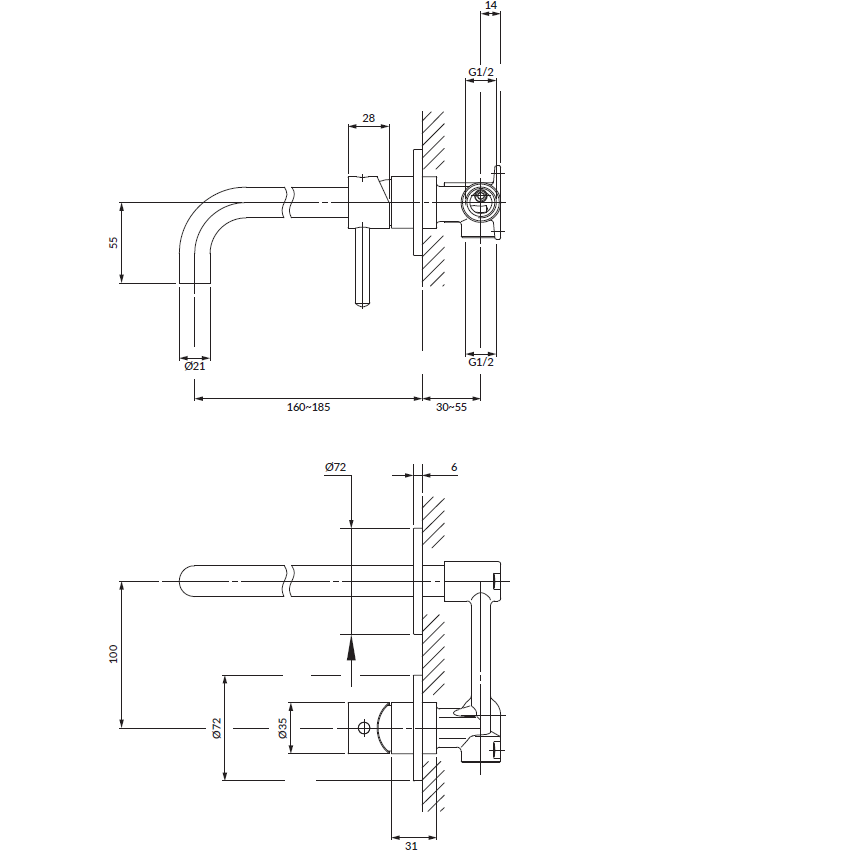 - zasięg wylewki od powierzchni płytek: 18,5 cm