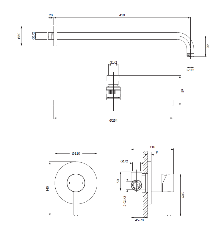- deszczownica mosiężna z ramieniem (WGSET1CP), rozmiar: ø25 cm, zasięg od ściany: 41 cm