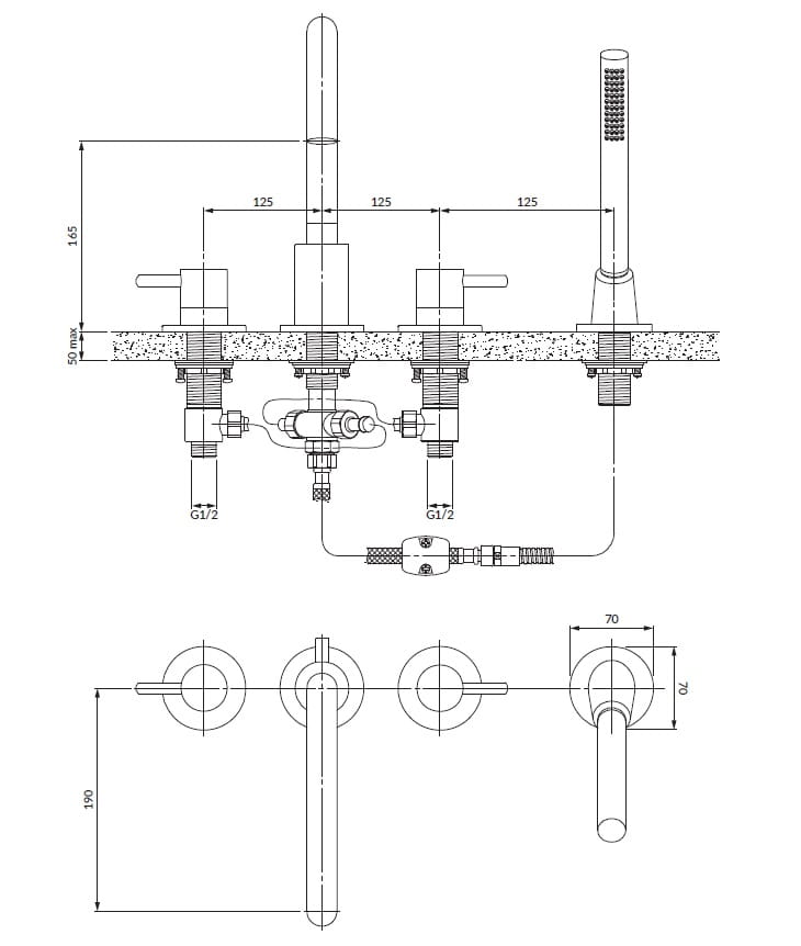 - rączka prysznicowa mosiężna, 1-funkcyjna