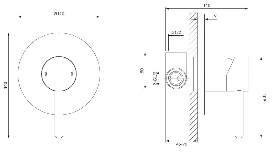 - dwa wejścia (na wodę ciepłą i zimną): 1/2”, jedno wyjście wody zmieszanej: 1/2”