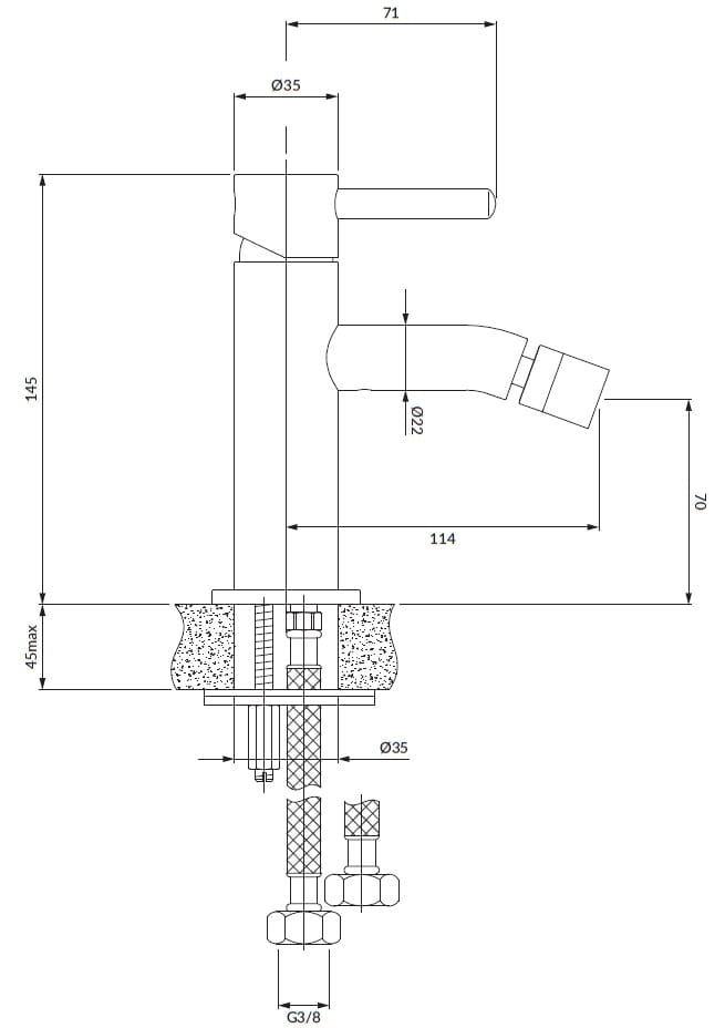 - wysokość wypływu wody: 7 cm