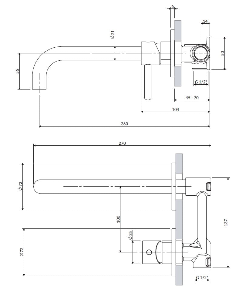 Y | bateria umywalkowa podtynkowa z długą wylewką