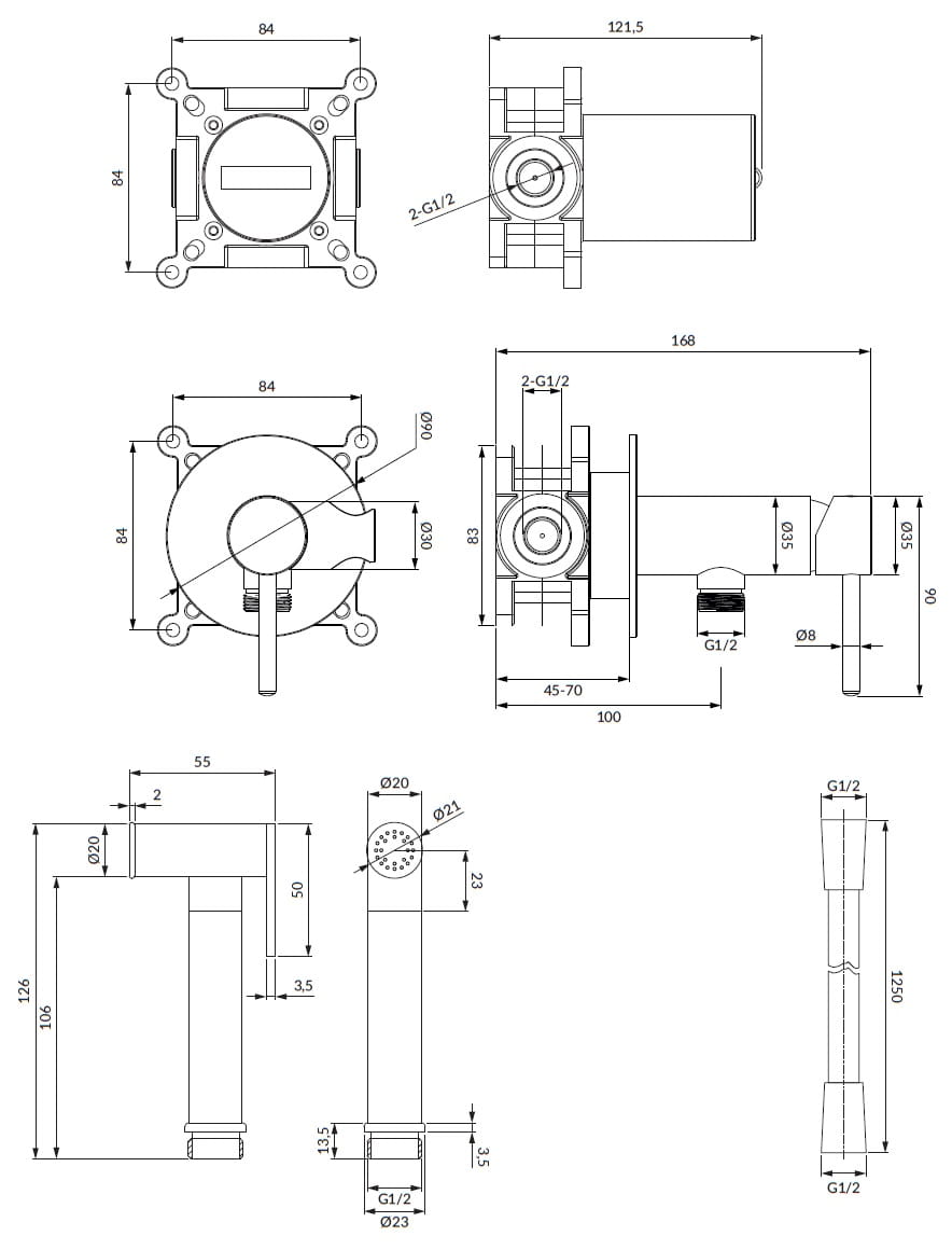 - wąż prysznicowy w osłonie ze stali nierdzewnej (022-XCPB), długość: 125 cm