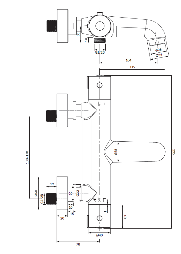 Bateria została wyposażona w najwyższej jakości głowicę termostatyczną, a jej korpus został wykonany z wysokogatunkowego mosiądzu.