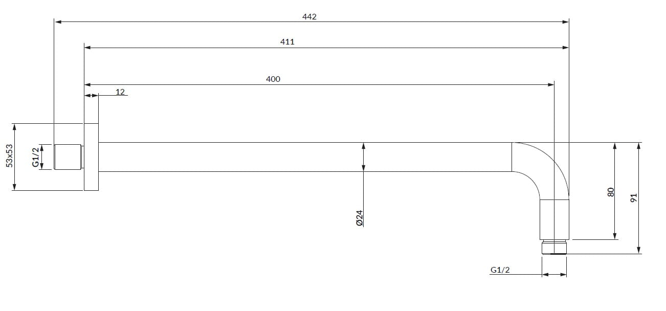RAMIĘ | ramię prysznicowe ścienne, 40 cm