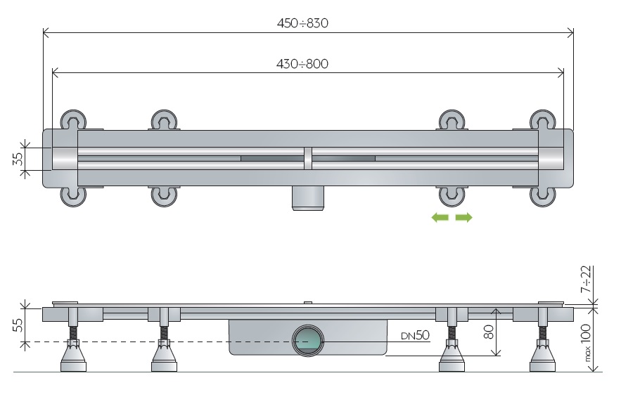 Omptea Sumisura odpływ prysznicowy liniowy 80 cm do przycięcia chrom szczotkowany 983.201.8.41