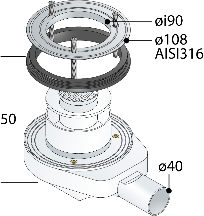 Omptea syfon brodzikowy ø90 mm bez pokrywy,niski 50 mm z sitkiem