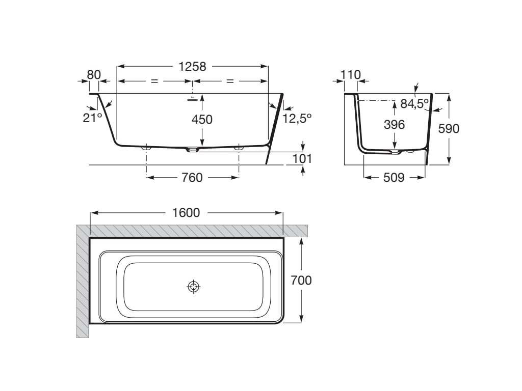 - Wymiary wanny: 160 x 70 x 59 cm
