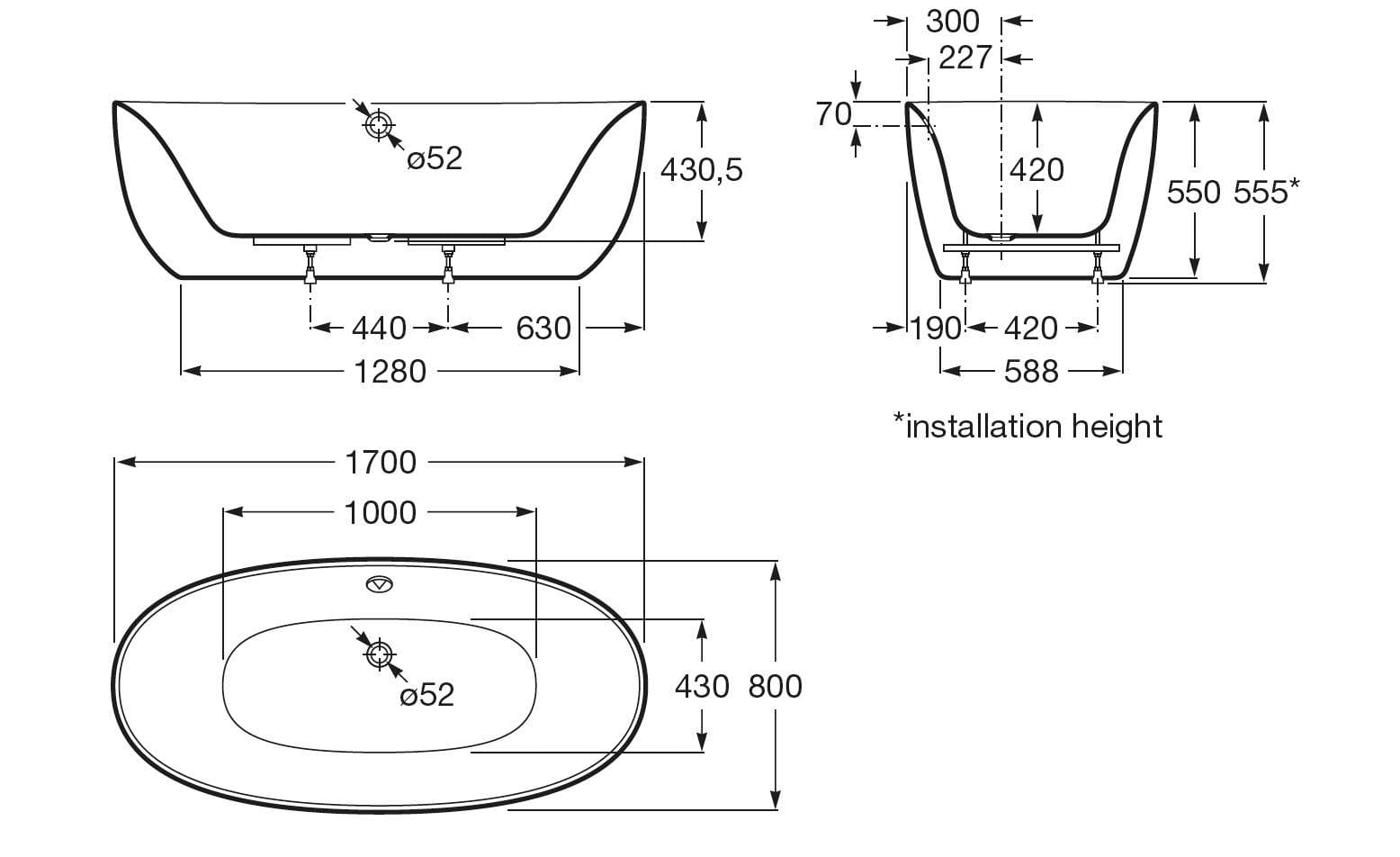 ROCA WANNA WOLNOSTOJĄCA VIRGINIA 170x80 z syfonem