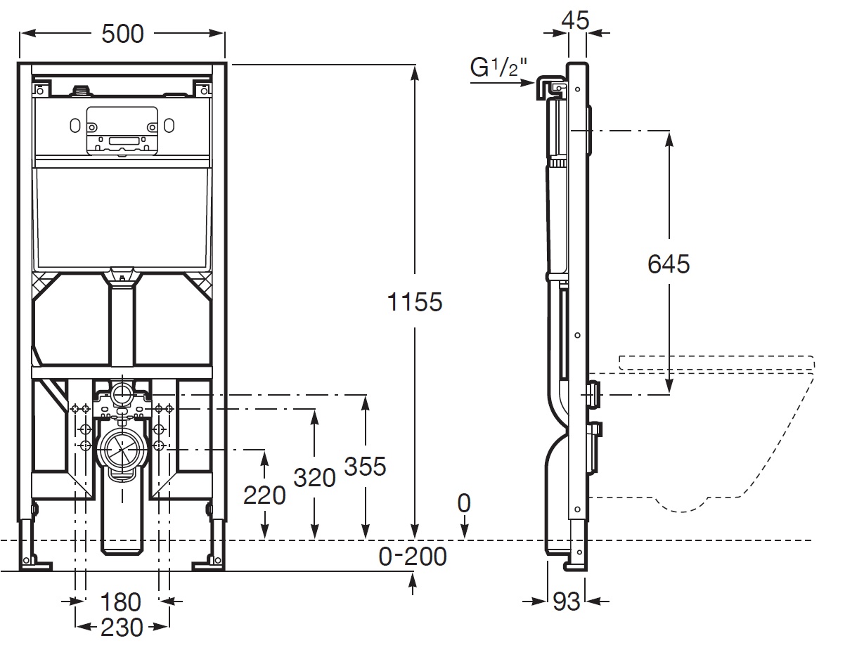 Stelaż podtynkowy do misek wc podwieszanych, do zabudowy lekkiej.