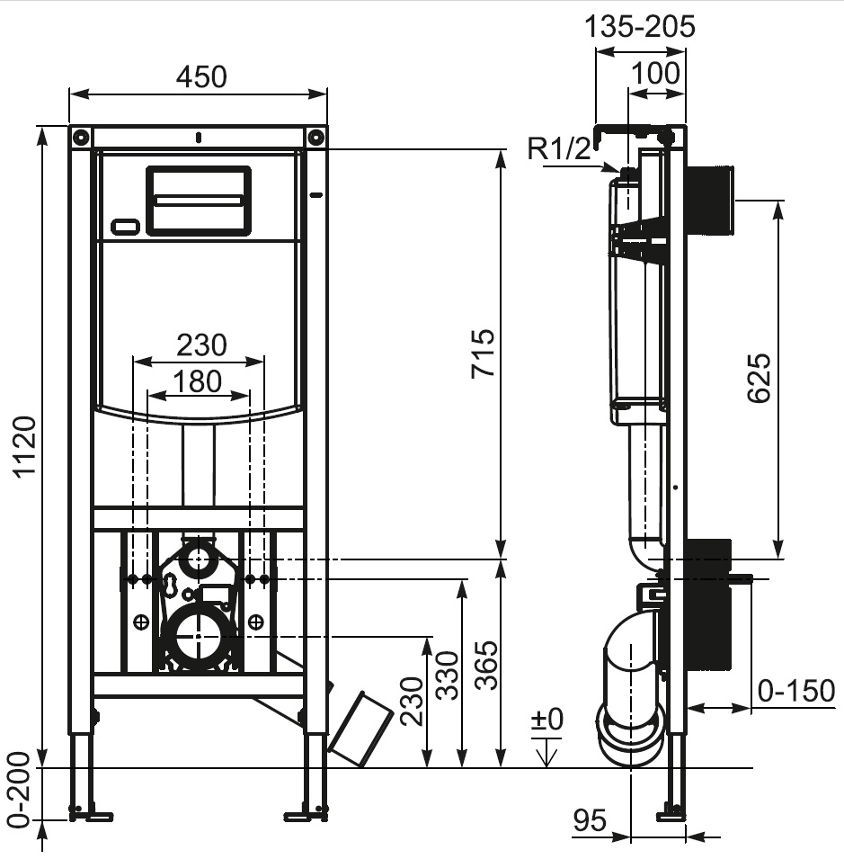 Stelaż podtynkowy do misek wc podwieszanych, do zabudowy lekkiej.