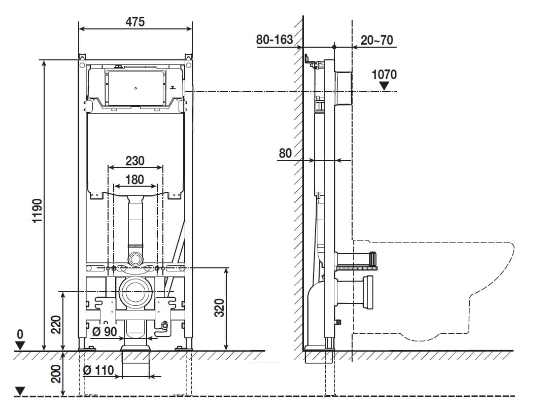 Stelaż podtynkowy do toalet myjących podwieszanych, do zabudowy lekkiej.