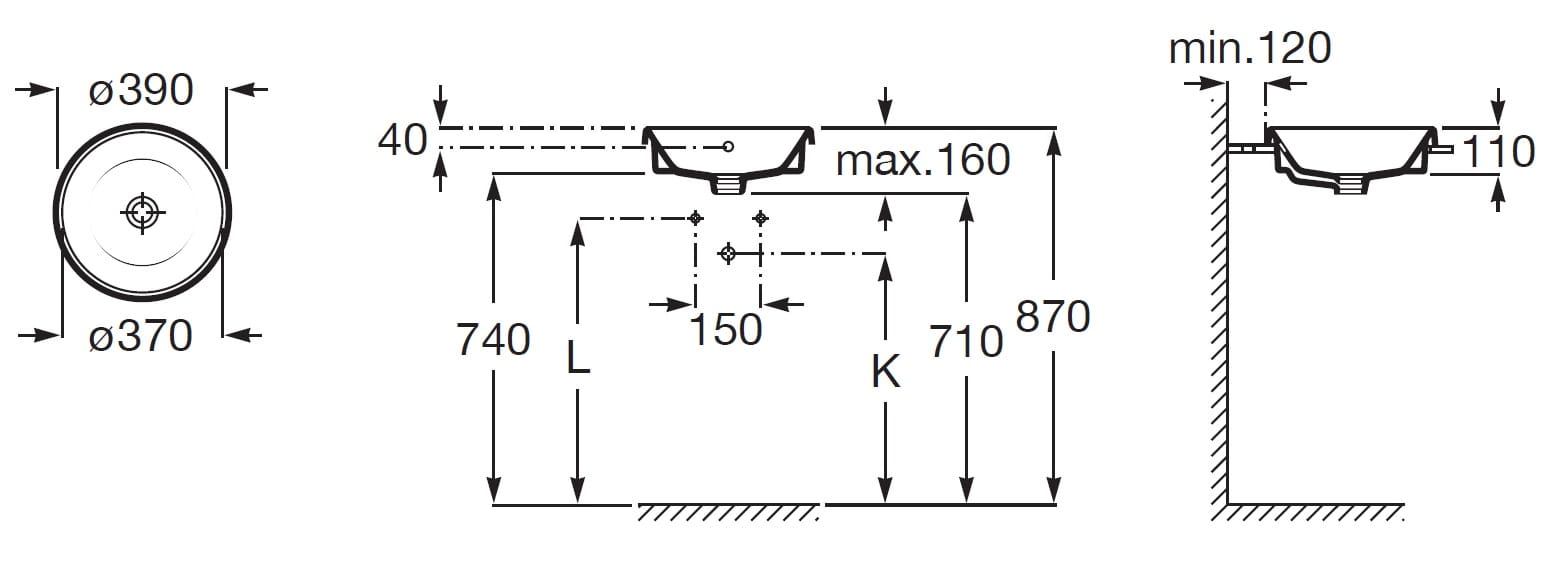 Roca GAP ROUND Umywalka blatowa okrągła, z przelewem 39 cm A3270Y3000