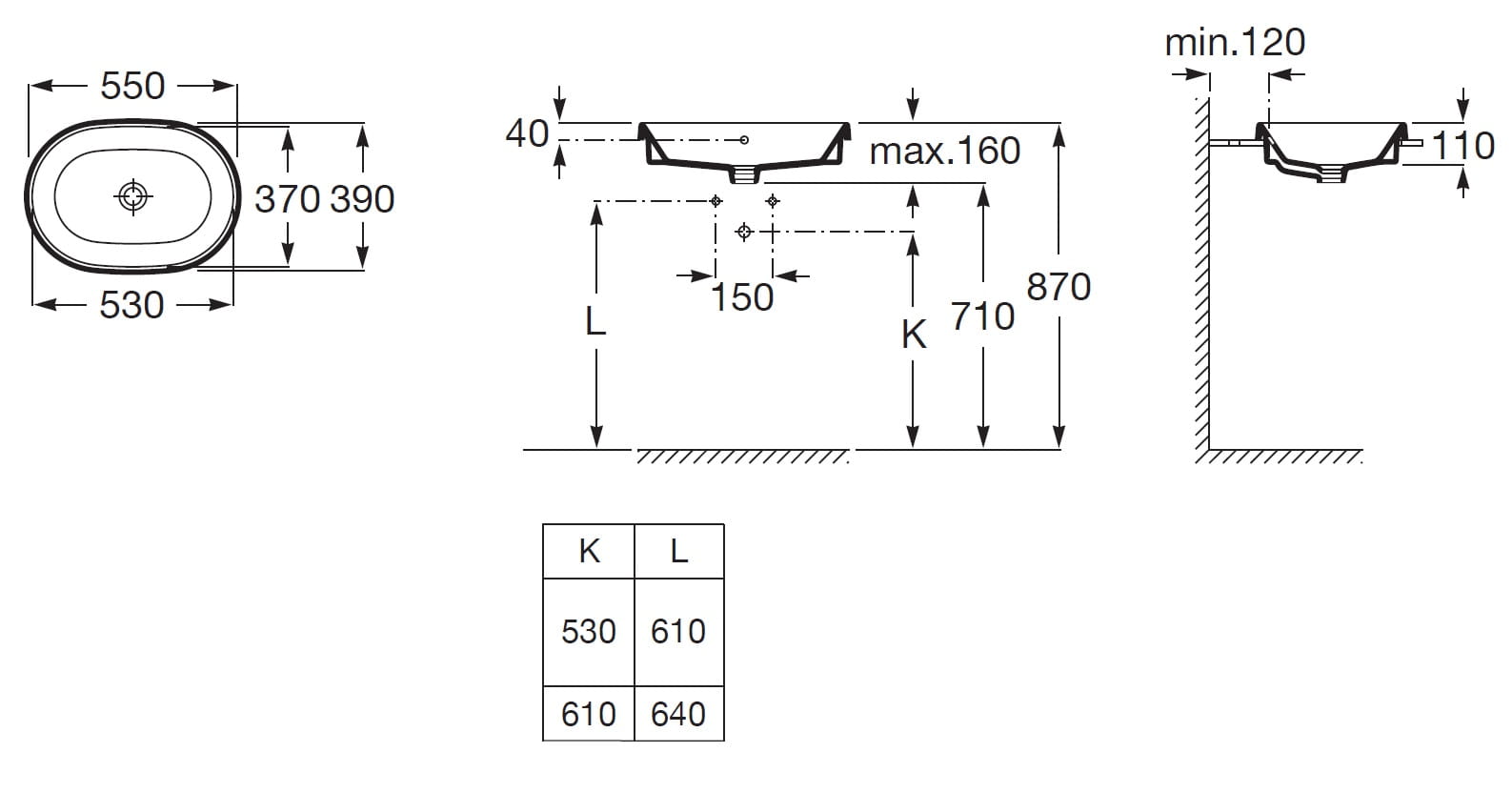 Roca GAP ROUND Umywalka blatowa owalna, z przelewem 55x39 cm A3270Y5000