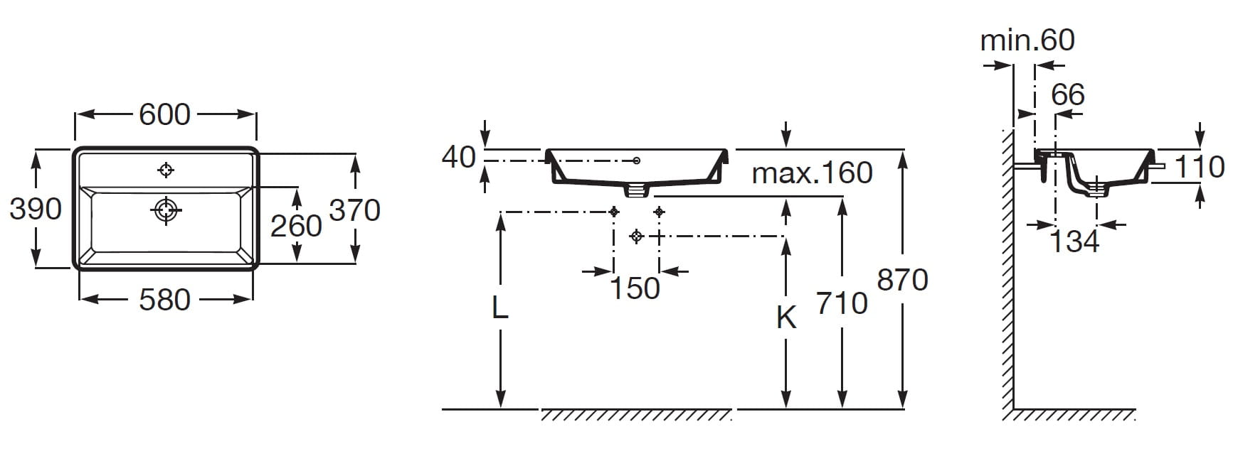 Roca GAP SQUARE Umywalka blatowa prostokątna, z otworem na baterię, z przelewem 60x39 cm A3270YA000