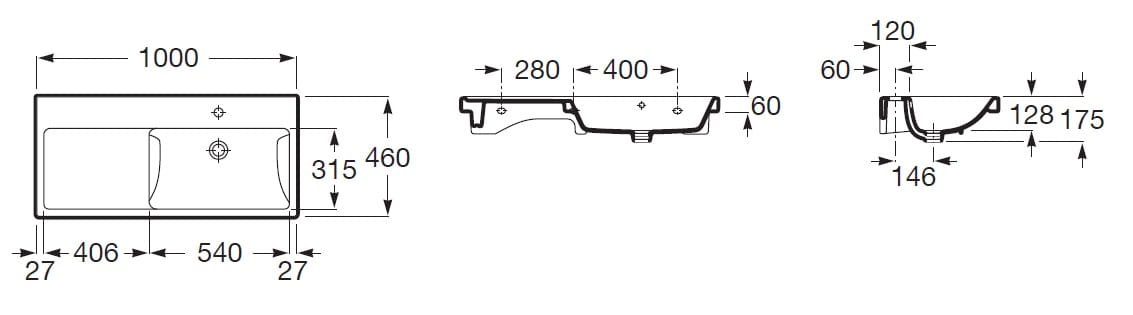 Roca GAP Umywalka ścienna asymetryczna prawa 100x46 cm A3270ME000