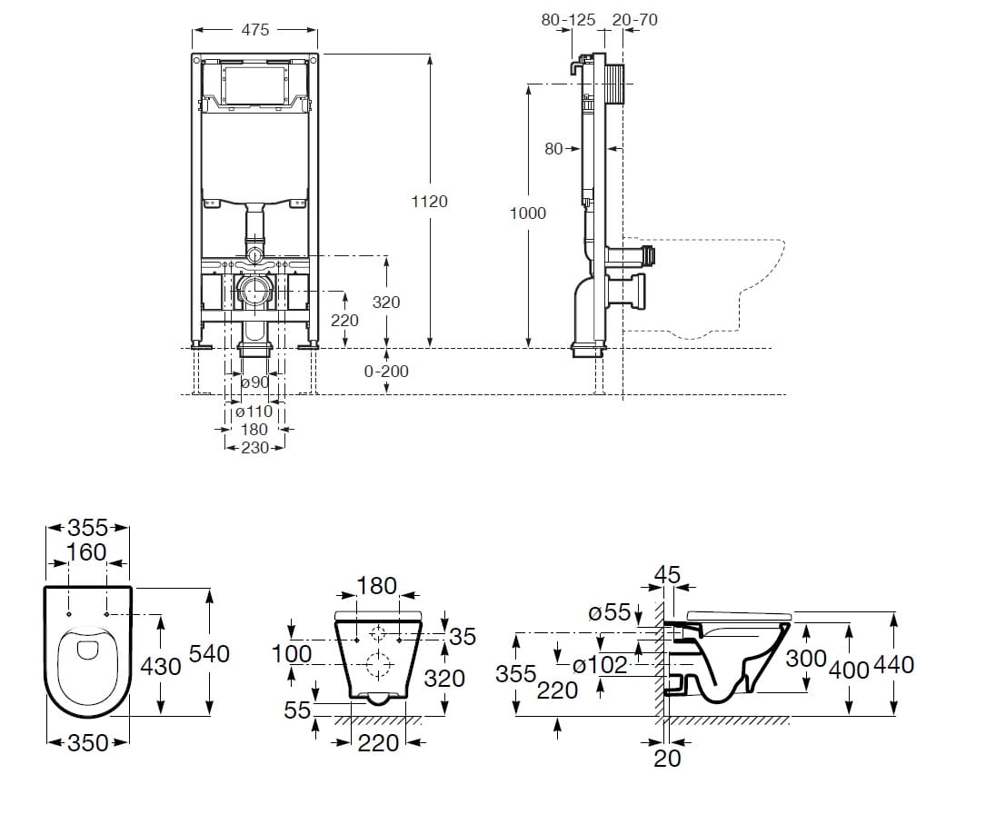 - Wyposażenie: zawiera stelaż DUPLO ONE (A890070020) i miskę WC podwieszaną GAP ROUND z deską SLIM (A34H0N8000)