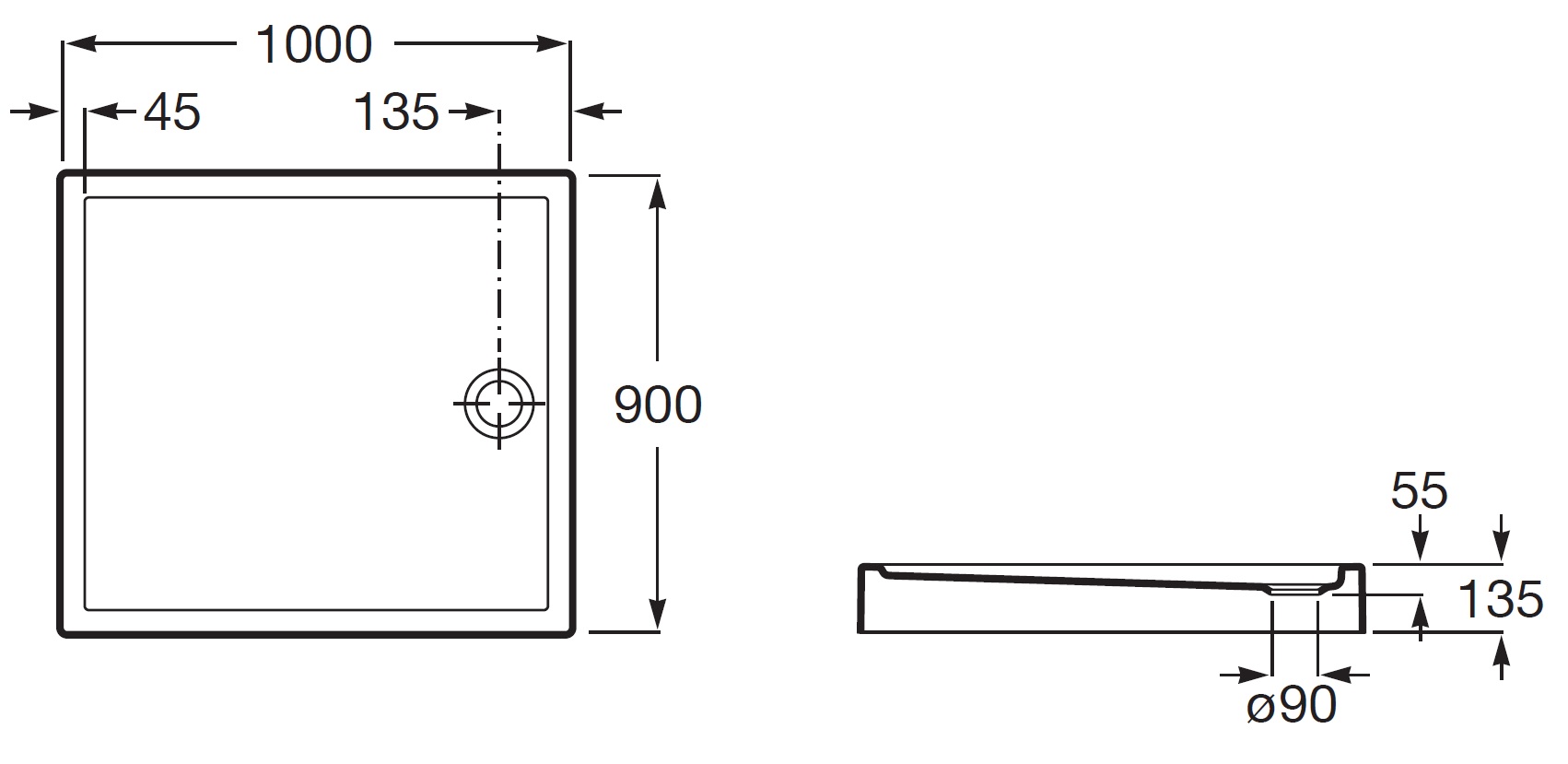 Średnica odpływu (mm):90