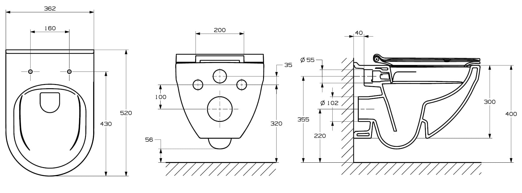 - Typ: podwieszana, Rimless