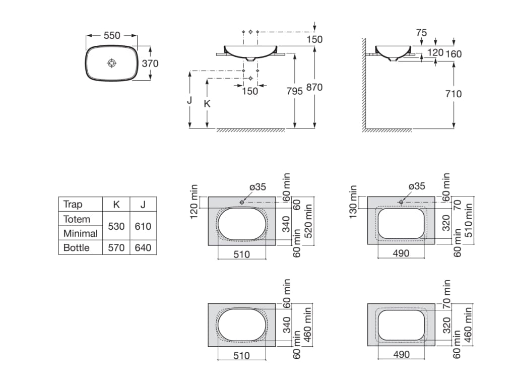 Roca INSPIRA Umywalka blatowa 550 x 370 x 75 mm FINECERAMIC® A327504000