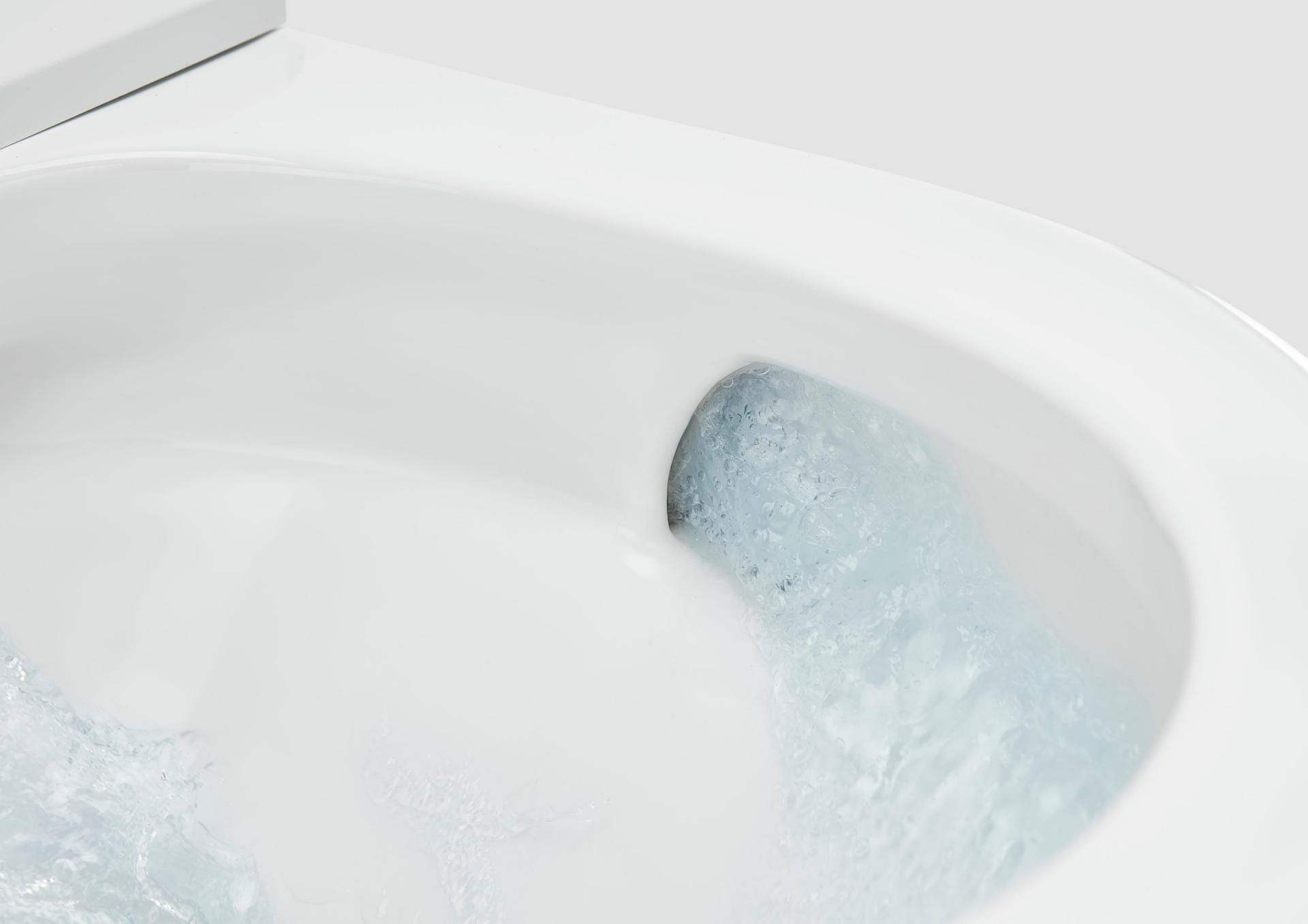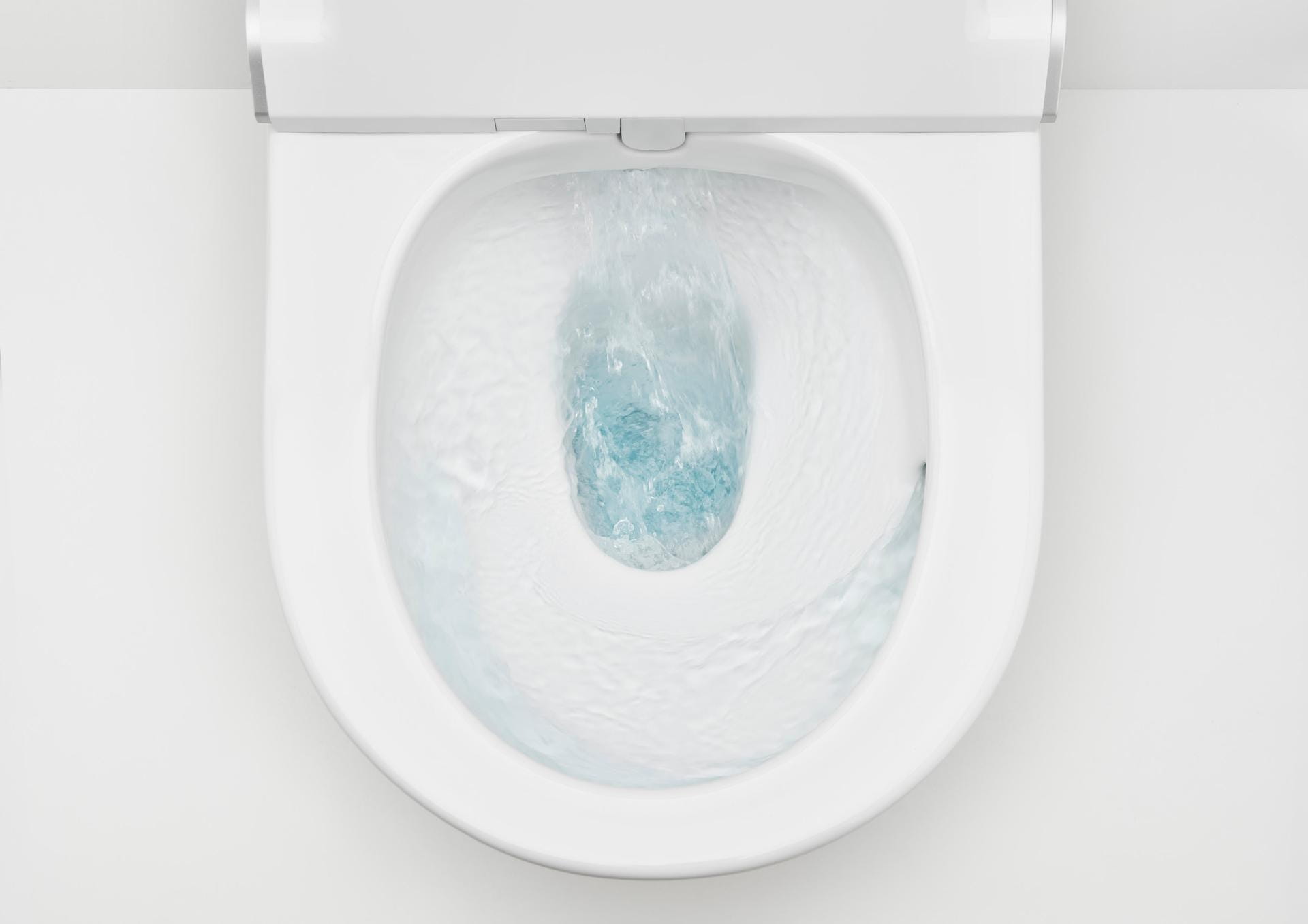 Dzięki Roca Rimless® Vortex woda tworzy na powierzchni miski wirujący strumień 360 stopni. Został on specjalnie zaprojektowany przy użyciu najbardziej zaawansowanych narzędzi inżynieryjnych, aby zapewnić optymalne obmywanie miski wc przy minimalnym zużyciu wody.