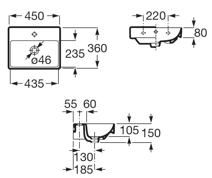 Roca Ona umywalka 450 x 360 x 150 mm A327682000 FINECERAMIC®