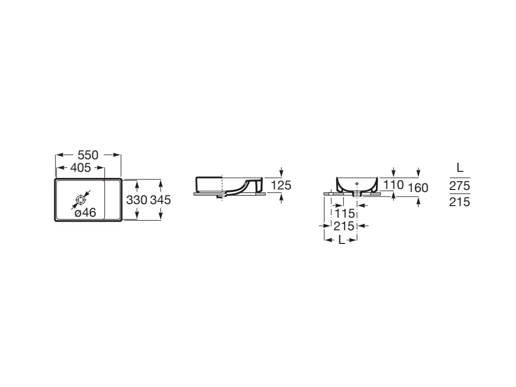 Roca Ona umywalka nablatowa 550 x 345 x 125 mm FINECERAMIC® A32768C000