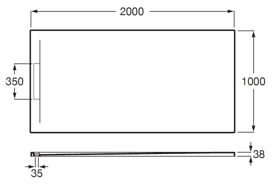 Roca Pyros Brodzik kompozytowy STONEX® Onyks 200 x 100 cm z ukrytym odpływem AP9017D03E803640