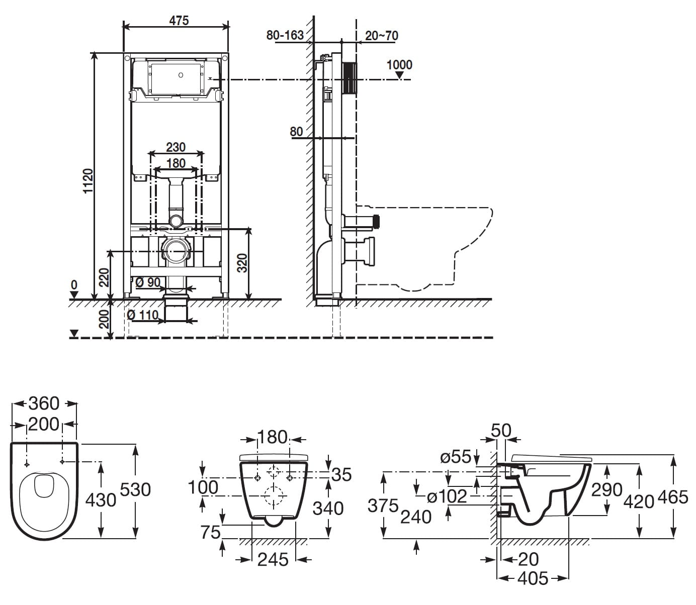 Roca Zestaw podtynkowy DUPLO ONE + miska WC podwieszana ONA RIMLESS z deską A893106300