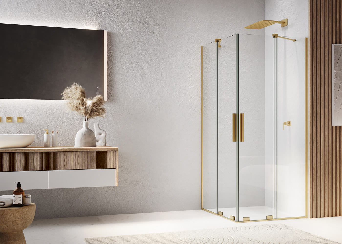 Ronal AMALIA D35SE2 100 cm drzwi prawe do kabiny z wejściem narożnym rozsuwanym dwuczęściowym złoto szczotkowane D35SE2P1001307