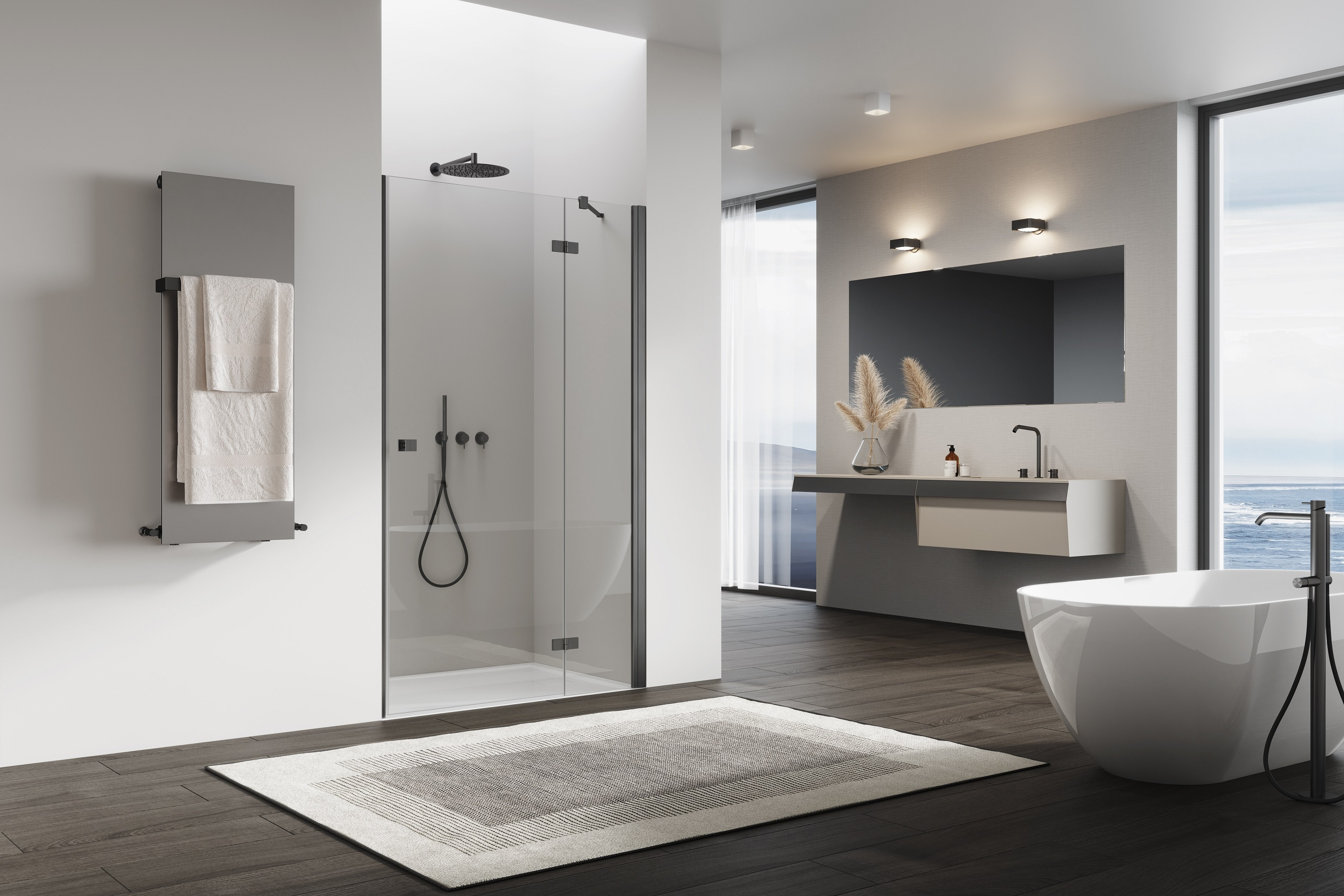 Ronal ANNEA DRZWI 120 cm prawe JEDNOCZĘŚCIOWE ZE ŚCIANKĄ STAŁĄ W LINII Gunmetal szczotkowany AN13D12002607