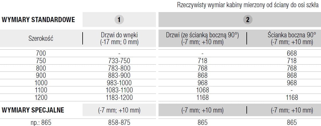 | Sposób otwierania | Ścianka stała/WALK-IN |