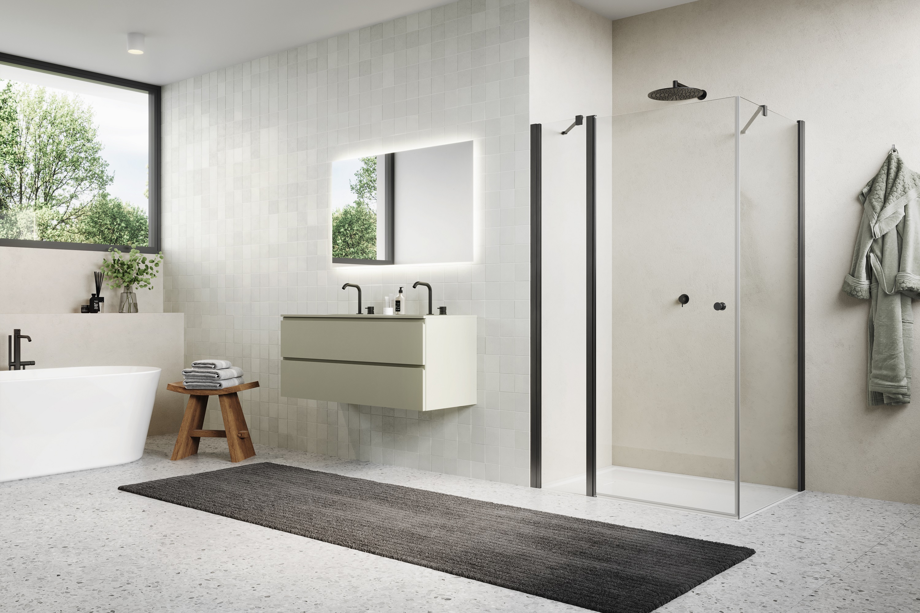 Ronal SOLINO DRZWI 90 cm DRZWI JEDNOCZĘŚCIOWE ZE ŚCIANKĄ STAŁĄ W LINII Gunmetal szczotkowany SOL1309002607