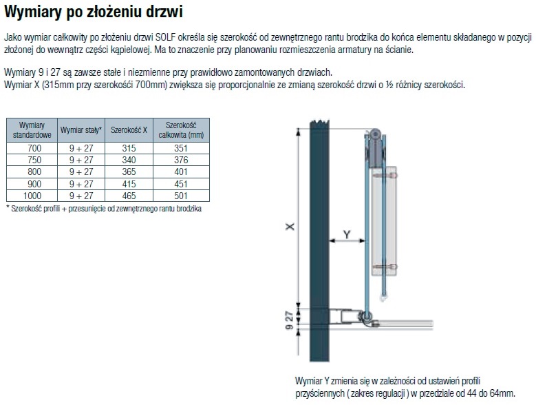 do osi szyby) regulacja na profilach od podanych wymiarów -10 mm do +10 mm